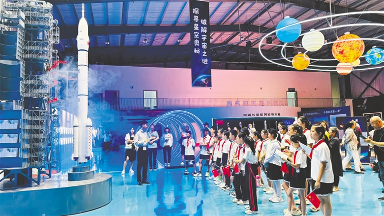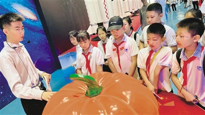 航天科普园分为航天科普和互动场馆两部分。在科普展区,同学们通过系列图片展、实物演示,了解飞船发射流程,并深入了解宇航员在太空中的生活与工作场景、太空育种技术、中国太空空间站的构造等,近距离、沉浸式感受航天科技的魅力。
