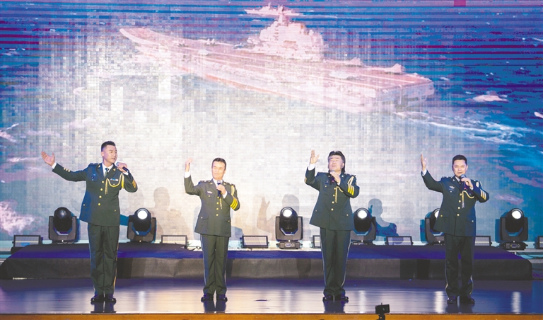 8月1日,在呼和浩特市新城区乌兰牧骑宫,演员们正在演唱《呼和浩特舰之歌》。当日,纪念中国人民解放军建军97周年“北疆战歌”军歌演唱会在首府开唱。演出曲目汇集了经典红歌,以及近年来所创作的歌颂军队建设、守边戍边、双拥共建等相关内容的歌曲。参演人员由内蒙古退役军人文艺志愿者组成,大家重温峥嵘岁月、演绎鱼水情深,歌颂军人的忠诚与担当,唱响了“军民鱼水一家亲”的时代旋律。