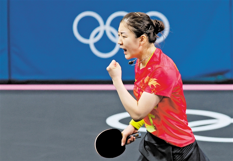 时隔三年,两人再度会师奥运决赛。孙颖莎率先进入状态,以11:4赢下第一局,陈梦以11:7拿下第二局。第三局,两人频繁进入多拍僵持,孙颖莎失误较多,陈梦以11:4反超局分。第四局,孙颖莎在10:5领先的情况下被追至10:9,请求暂停后以11:9获胜,追平大比分。第五局,两人交替领先,战至9:9时陈梦连得两分,大比分3:2领先。第六局,陈梦在9:6领先时请求暂停后连得两分,以11:6获胜,赢得冠军。