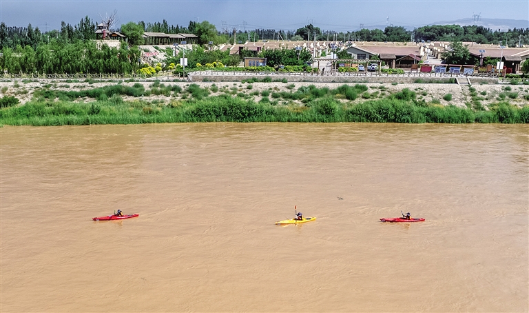 8月5日,来自四川成都的小朋友正在黄河乌海市海南区段进行漂流。乌海是黄河进入内蒙古的第一站,黄河穿城而过,流经里程105公里,吸引了各地漂流爱好者前来漂流。近年来,乌海市依托独特地理优势,整合乌海湖、乌兰布和沙漠、黄河西行客栈等旅游资源,积极开展水上运动、徒步探险、沙漠越野等特色体育赛事和旅游休闲产业,不断丰富旅游业态,满足游客多元化需求。