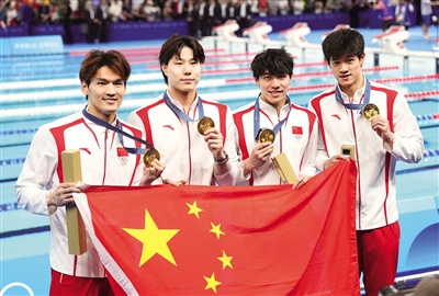 男子4×100米混合泳接力决赛上,中国队力压该项目40年“霸主”美国队和占尽主场优势的东道主法国队,以3分27秒46的成绩夺冠。