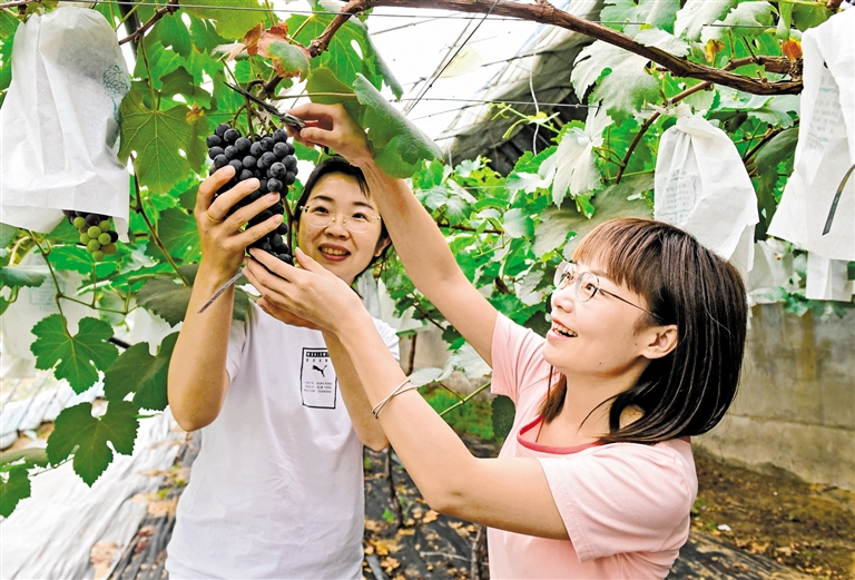 8月9日,乌海市乌达区绿农永胜农民专业合作社的葡萄喜获丰收,市民正在采摘。乌海市地处黄河、乌兰布和沙漠、库布其沙漠和毛乌素沙地交汇处,独特的水光热资源孕育了乌海好葡萄,好葡萄也成就了乌海成为“葡萄之乡”。目前,乌海市已建成30多处以葡萄为主的农业休闲观光园、葡园绿道及4个沙漠原生态葡萄酒庄,种植面积超3万亩,品种有100余个,年产量超万吨。本报记者 孟和朝鲁 摄