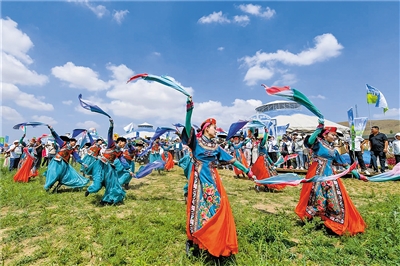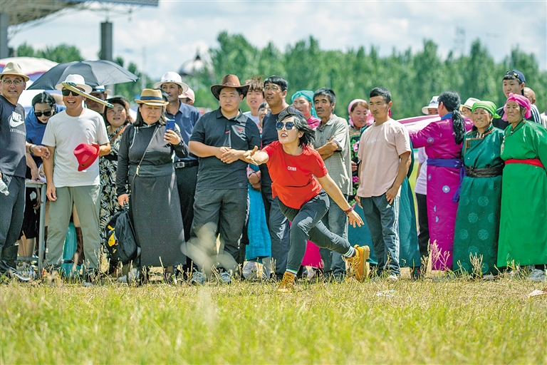搏克、射箭、赛马……传统体育竞技项目渐次上演,美食品鉴、民族服饰秀、非遗体验等活动让人们沉浸式体验那达慕的韵味。夜幕降临,熊熊篝火点燃热情,游客们与乌兰牧骑演员一起跳舞、唱歌,享受着盛夏草原的欢乐。