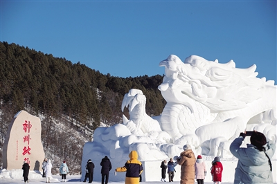 游客在黑龙江漠河市北极村内游玩(2024年2月2日摄)。 新华社记者 张涛 摄