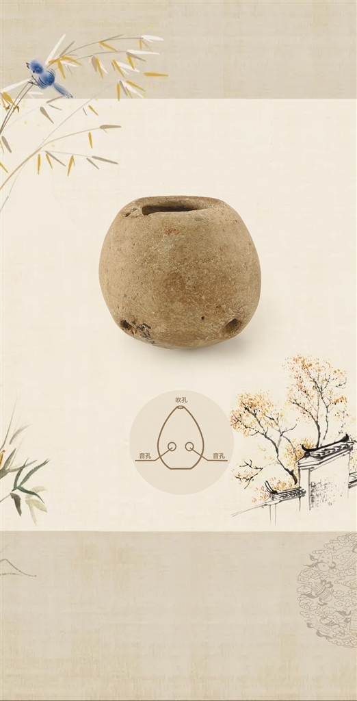 陶埙作为中国古老的吹奏乐器之一,发明者已经无从考证,但是史料记载和考古实证证明了它历史久远的存在。《世本》相传由战国时期赵国史官编著,记载自黄帝至春秋以来的帝王诸侯卿大夫世系、都城、制作工艺等内容,因避唐太宗李世民讳,改称“代本”“系本”。《世本》中记载:“埙,暴辛公所造。”东汉经学、文学家马融在代表作《长笛赋》中说:“暴辛为埙。”据考古调查发现,埙产生于史前时代,目前发现的最古老的一枚陶埙距今大约7000年。
