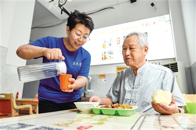 9月3日,在乌海市乌达区惠民餐厅内,工作人员正在征集老人对餐食的意见。据了解,乌达区通过建设“六级六边”全域性标准化社区养老服务网络,累计建成投入运营各类养老服务设施37个,包括区级智慧养老指挥调度中心1个、镇街道养老服务中心8个、社区居家养老服务站16个、中央厨房2个、惠民餐厅8个、养老机构2家,基本实现社区居家养老服务设施全覆盖。本报记者 孟和朝鲁 摄