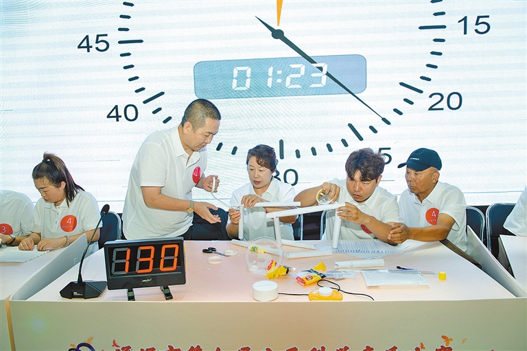 在科普创意比拼——“小纸桥大智慧”环节,参赛选手们思维敏捷、反应迅速,难分伯仲,现场气氛紧张激烈。格日勒图 摄