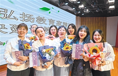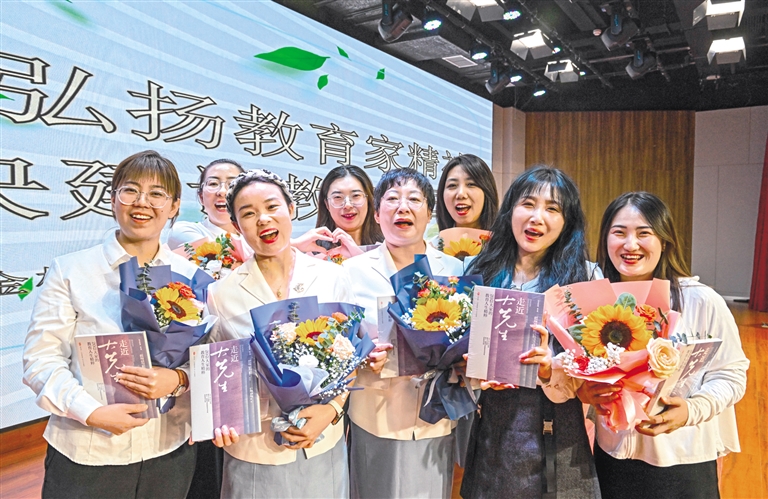 9月10日,呼和浩特市赛罕区金桥小学的教师手捧《走近大先生:20位大家的教育人生精粹》一书合影。当日,为激励和促进广大教职工立足岗位,积极投身教育事业,大力弘扬教育家精神,该小学开展了“大力弘扬教育家精神,加快建设教育强国”为主题的第四十个教师节庆祝活动,向全体教职工致以崇高的敬意和真挚的祝福。本报记者 王磊 摄