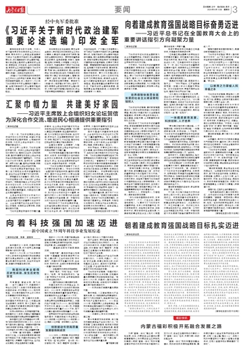 《习近平关于新时代政治建军 重要论述选编》印发全军