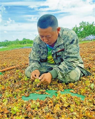 在榛子种植户李峰家的院子里,新采摘的榛子经过晾晒,逐渐变成诱人的褐色。