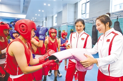9月15日,奥运健儿李倩、杨柳在给小队员们签名。当日,呼和浩特市体育运动学校举办了“冠军讲给未来冠军听”活动,邀请在巴黎奥运会上斩获冠、亚军的内蒙古拳击运动员李倩、杨柳与小队员们面对面进行亲切交流,她们分享了自己的奋斗历程,向小队员们传授了比赛技巧。本报记者 孟和朝鲁 摄