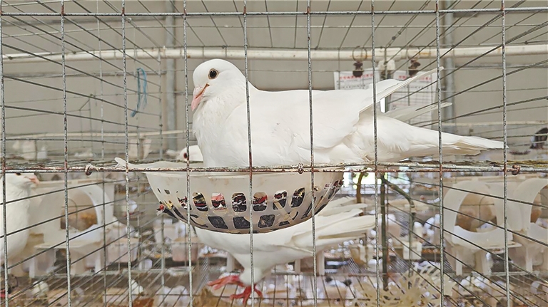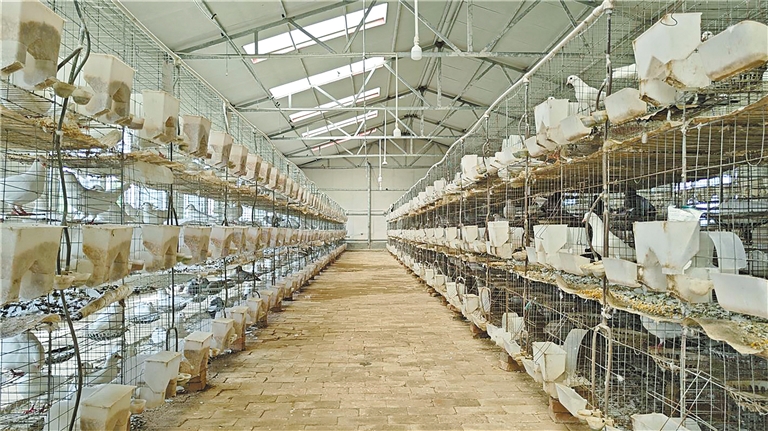秋日,走进太平河村兴牧肉鸽养殖基地,赵建伟正忙着给鸽子喂食。一排排鸽笼整齐排列,体形肥硕、毛色光滑的白色、灰色的鸽子在舍内来回走动、啄食,不时扇动翅膀,“咕咕”欢唱。