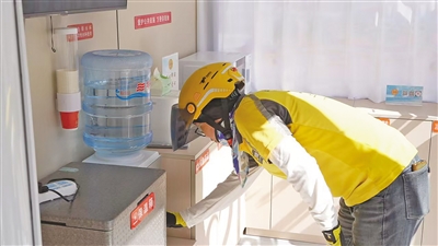 仅有20平方米的移动“工会驿站”,配备了空调、电视机、图书角等,同时提供微波炉、饮水机、保温箱、冰箱等小型电器,应急药品、工具箱、针线包、打气筒、充电宝、充电器、雨具等常用物资一应俱全。