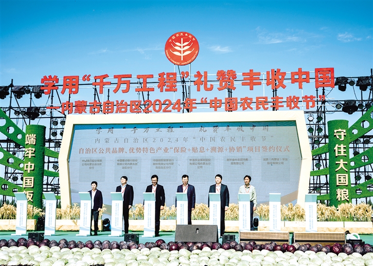 活动现场举办了“金融突围 助力农牧业高质量发展”签约发布活动,中原农业保险内蒙古分公司与中国农业发展银行内蒙古分行、中国工商银行内蒙古分行、中国农业银行内蒙古分行、中国银行内蒙古分行、中国建设银行内蒙古分行、中国邮政储蓄银行内蒙古分行、内蒙古自治区农村信用社联合社、人保财险内蒙古分公司、安华农险内蒙古分公司共同签署了“金融副村长+金融服务+农牧数字金融全覆盖”战略合作协议,依托数字化渠道提升农牧金融科技应用创新能力,构建农牧数字金融服务平台,推动普惠金融产品的覆盖广度深度,满足农牧民生产经营信贷资金和风险保障需求。中原农业保险内蒙古分公司与中国银行内蒙古分行、中国建设银行内蒙古分行、中国邮政储蓄银行内蒙古分行、中农阳光数据有限公司、龙鼎农业股份有限公司签署了自治区公共品牌、优势特色产业“保险+贴息+溯源+协销”合作协议,通过聚焦优势特色产业、公共品牌建设需求,在助农贷款贴息支持产业、研发特色保险产品保障风险、引进溯源体系提升认证能力和塑造品牌力,以及引进线上平台、依托行业客户、员工平台开展助农协销行动,推动自治区优势特色产业销售规模提升、农牧产业发展壮大。