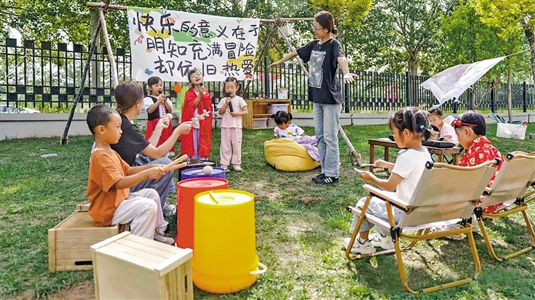 目前,在康巴什,一场以“幼有优育”为目标的保育教育质量提升实验区建设正如火如荼地进行。走进康巴什区幼儿园,仿佛踏入一个充满童趣和自然气息的梦幻乐园。幼儿园充分利用现有资源,打造出亲近自然、生态环保、立体化的户外空间环境,孩子们在这里踩着松软的泥土,近距离观察植物生长、亲手喂养小动物,感受大自然的神奇与美妙。室内环境同样让小朋友们喜欢,低结构材料的丰富投放,激发了孩子们无限的创造力和想象力,每个角落都成为孩子们探索和发现的小世界。