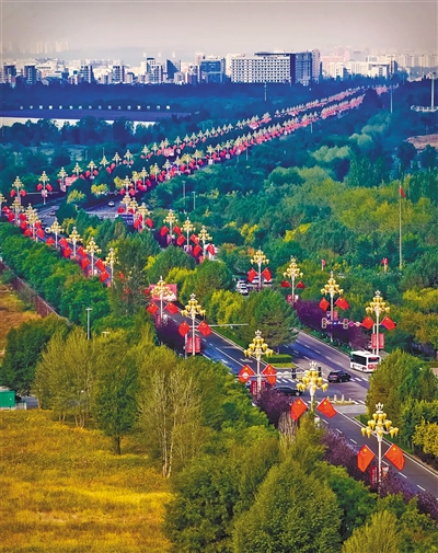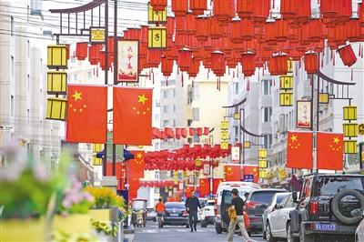 连日来,呼和浩特市的街道、公园广场挂起了鲜艳的五星红旗。一面面崭新的五星红旗迎风招展、一片火红,这是对祖国繁荣昌盛的美好祝愿。