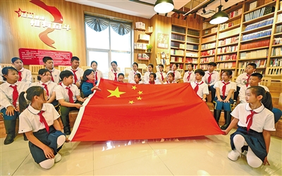 “大家知道五星红旗的含义吗?上面的五角星代表什么?……”9月27日,孙安琴在内蒙古自治区团委活动室耐心为孩子们讲解着五星红旗的故事。