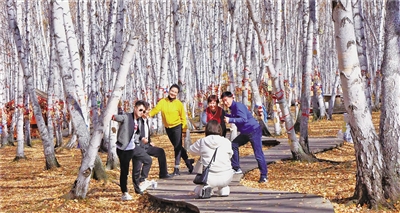 游客打卡白桦林