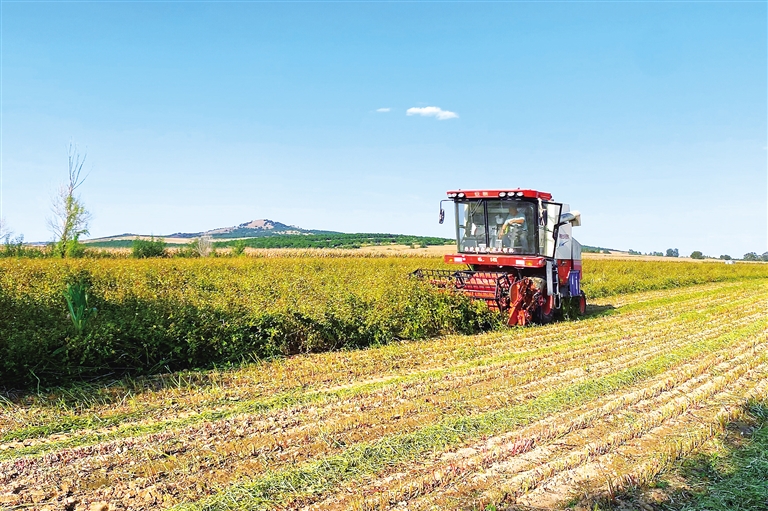 国庆期间,通辽市库伦旗白音花镇治国农机种植专业合作社托管的500亩荞麦进入收割季。近年来,“中国荞麦文化之乡”库伦旗通过土地流转、合作社种植、公司化经营和农户散种等多种形式逐步提高荞麦种植面积,今年全旗共种植荞麦10万亩,预计总产量在1.5万吨以上。本报记者 鲍庆胜 摄
