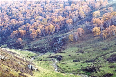 10月5日,呼和浩特市井尔梁高山草原秋意正浓,风景如画。井尔梁高山草原地处大青山自然保护区腹地,距呼和浩特市区20多公里,野生动植物资源丰富,尽显生态之美。本报记者 王晓博 摄