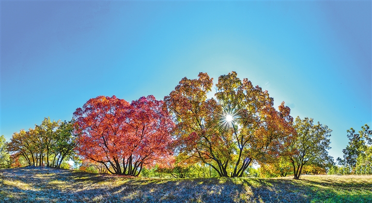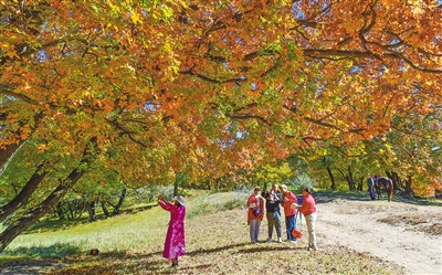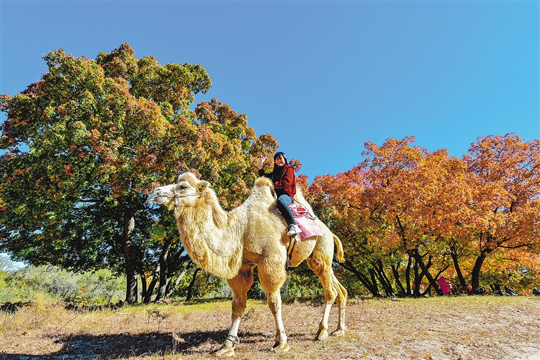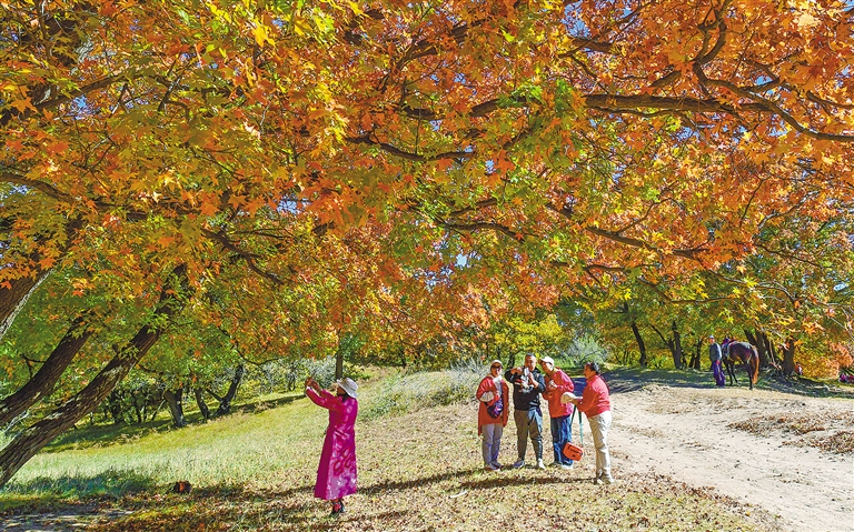 漫步在金秋时节的乌旦塔拉五角枫森林公园,千百年的古树历经风雨仍傲立于沙漠,用多彩生命点缀这方土地,展现着顽强的生态力量和不息的生命奇迹。在乌旦塔拉枫叶节的带动下,当地生态产业蓬勃发展,一项项生态治理成果变成一幕幕自然美景。