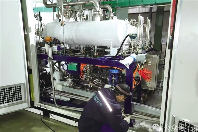空气中取之不竭、工业废气中“量大管饱”的二氧化碳,跟氢气发生奇妙的化学反应,生成飞机的“口粮”——航空煤油。鄂尔多斯实验室副主任张晨曦介绍,这项技术拥有催化体系构筑、反应器装备制造、柔性系统的集成3个创新点,是一条远比欧美更先进的新路子。