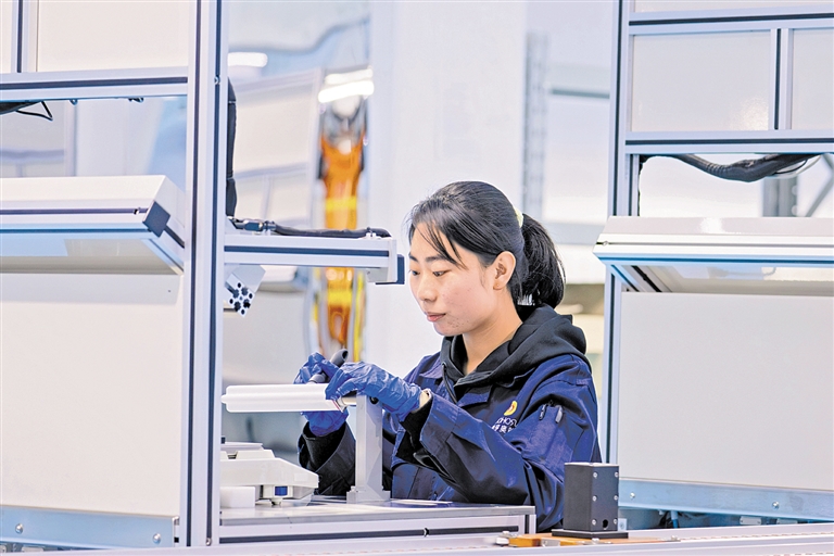 11月9日,在达拉特旗内蒙古建亨奥能科技有限公司钠盐储能电池生产项目车间,工人正在生产线上进行小批量试生产。建亨奥能3GWh钠盐储能电池生产项目总投资25亿元,全部建成后,将成为全球自动化程度最高、产业链条最完整、产能最大的3GWh钠盐电池生产基地,年产值可达60亿元。该项目预计2025年实现一期量产。