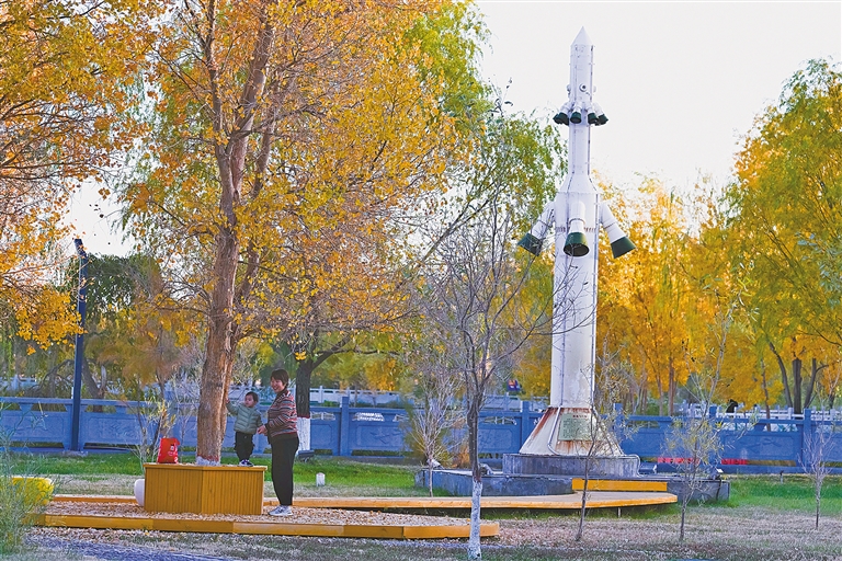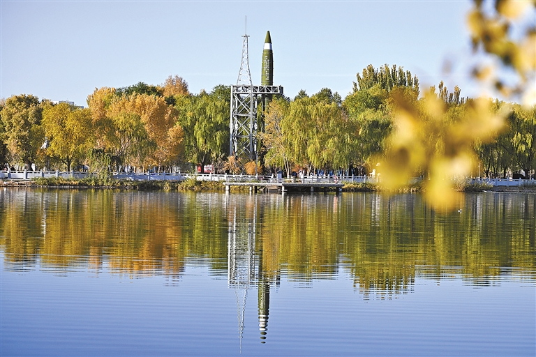 发源于祁连山的弱水河(当地称黑河)缓缓流经东风航天城飞天公园,蓝天碧水、金色胡杨、河边芦苇交织成一幅优美画卷。东风,不止有神舟飞天,还有迷人的风光。