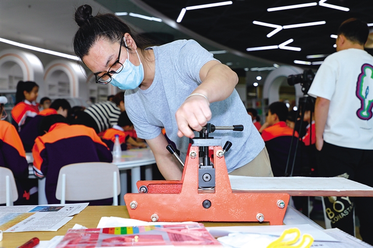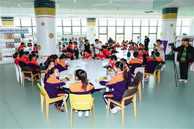 在11月2日举行的少年儿童文学艺术创想活动现场,富力小学的孩子们兴高采烈地围坐在一起进行版画创作,近距离感受哲里木版画的独特魅力。