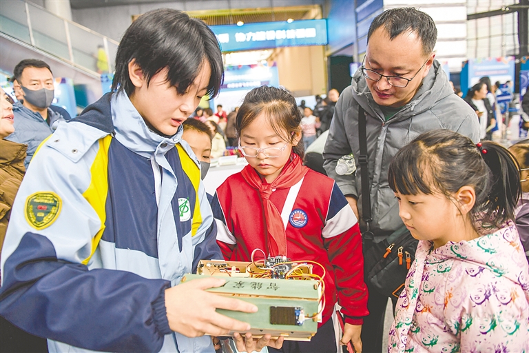 11月23日,学生们在科技馆里参观学习。当日,呼和浩特市回民区教育局在内蒙古科技馆举办首届科学节,让学生们感受科技魅力,激发他们崇尚科学、探索未知的兴趣。本报记者 王晓博 摄