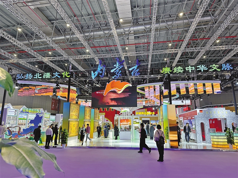 今年,内蒙古展区围绕“弘扬北疆文化 赓续中华文脉”主题,分设“赓续红色血脉”“我和草原有个约定”“在希望的田野上”“黄河‘几字弯’”“长城两边是故乡”五大版块,集中展现内蒙古独特的自然风光、厚重的文化底蕴和特色鲜明的文化产品。