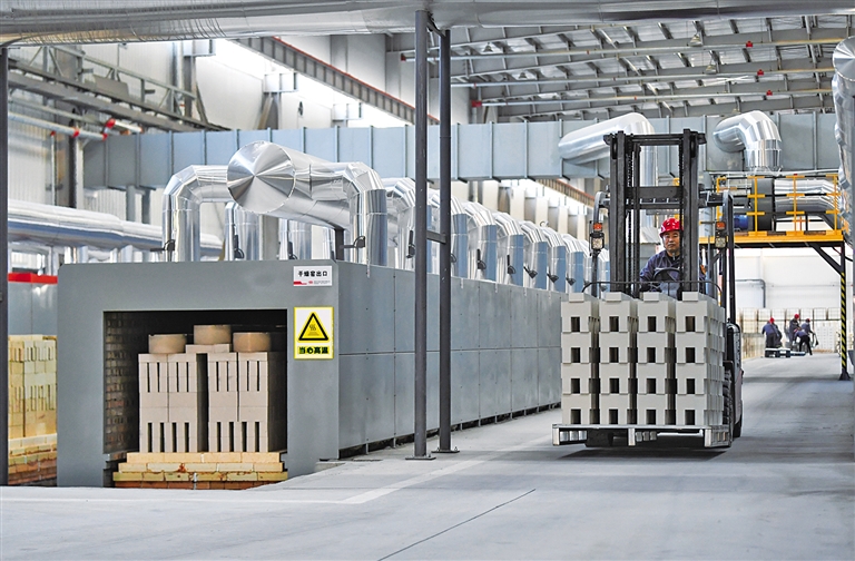 11月30日,在包头市安德稀耐新材料有限公司生产车间内,工作人员准备烧制稀土复合耐火砖。近年来,包头稀土高新区加强稀土应用研究,强化高端终端应用,让更多科研成果从实验室走向大市场,全力推进“两个稀土基地”建设。截至目前,包头市现有稀土企业209家、规上工业企业85家、国家高新技术企业70家。本报记者 孟和朝鲁 摄