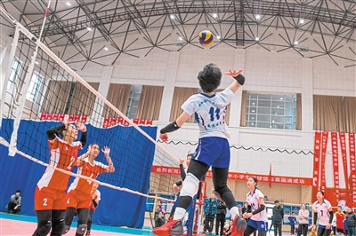 12月1日,排球少年们精彩对决。当日,2024年呼和浩特市中小学生排球锦标赛在呼和浩特市第一中学体育馆拉开帷幕,此次比赛吸引了首府30所中小学校的54支队伍参加。本报记者 王晓博 摄
