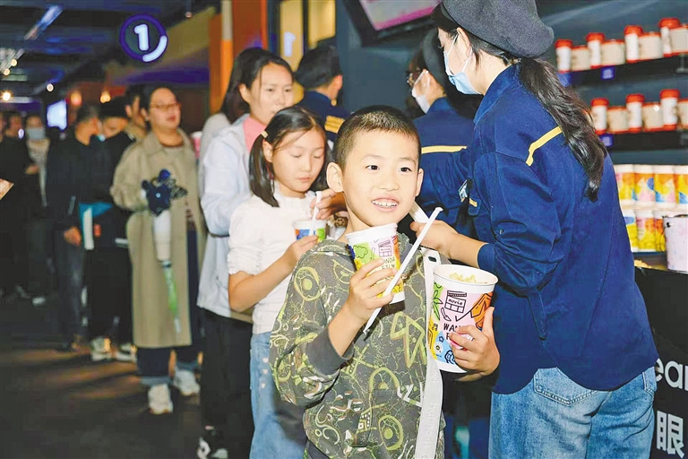50余部爆款影片在11月扎堆来袭,涵盖悬疑、动作、科幻、动画、喜剧等多种类型。连日来,记者走访了呼和浩特市万达影城、中影星美国际影城等多家电影院,看到售票窗口与自动取票处观众有序排队购(取)票,往来观众络绎不绝。观众中不仅有享受周末时光的亲子家庭,还有“饭搭子”结伴观影,多元化的影片或温情温暖,或青春烂漫。