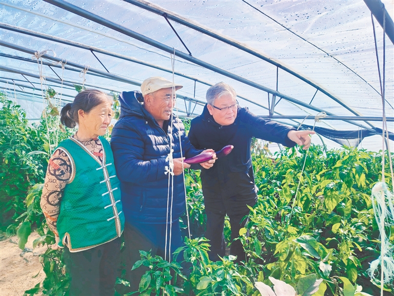 寒冬时节,乌兰察布市四子王旗戍边户家中的“劳模戍边蔬菜温室”温暖如春、满眼绿色。