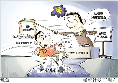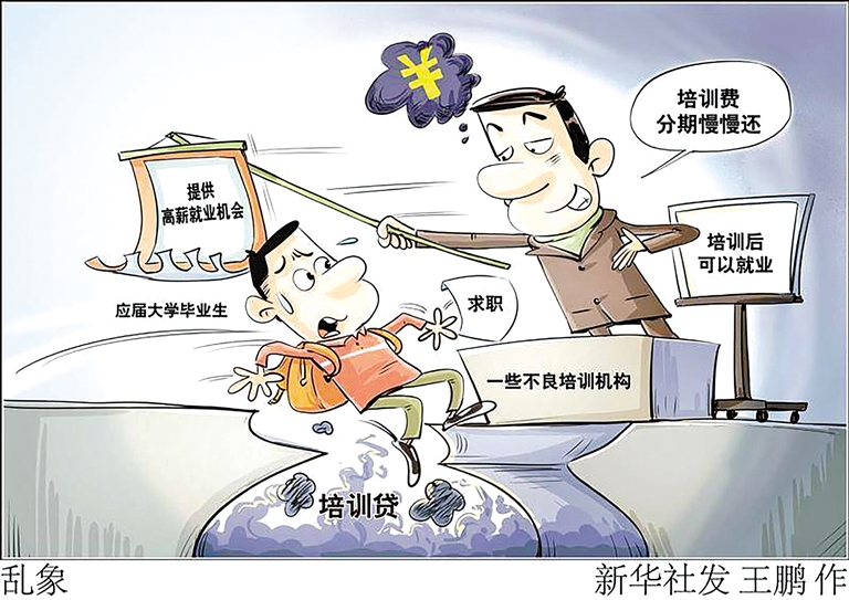 “其实你资质挺好的,就是需要通过培训提高经验”“分12期慢慢还,没有任何压力”……近日记者调研发现,近期培训贷乱象有所抬头,一些不良培训机构以提供高薪就业机会为幌子,诱导求职者特别是应届毕业生签下培训贷合同,支付高额培训费用。新华社发 王鹏 作