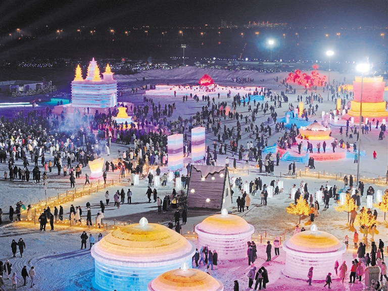 冰凌玉世界,雪舞映新辉。2024年12月31日,2025第四届呼和浩特欢乐冰雪节盛装开幕,大黑河军事文化乐园“冰雪狂欢夜”跨年活动吸引超3万人次入园迎新年。本报记者 郑学良
