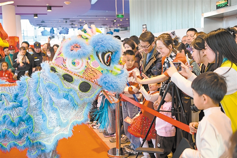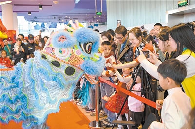 1月1日,萌狮正在和小朋友们互动。当日,呼和浩特市老牛儿童探索馆举行“新年如愿”元旦主题活动,让孩子们走进充满欢乐与惊喜的探索之旅,在丰富多彩的活动中感受新年的喜悦氛围。本报记者  孟和朝鲁  摄