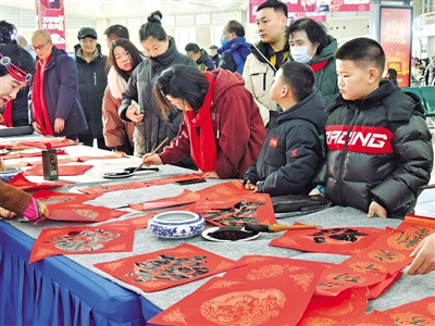 1月14日,2025年春运正式拉开帷幕,呼和浩特东站举办“我的铁路风景”主题宣传活动启动仪式,开展了写春联送福字、非遗剪纸、工艺品展示等文化活动,为旅客送上祝福。记者从铁路部门获悉,春运自1月14日起至2月22日止,中国铁路呼和浩特局集团有限公司预计发送旅客439万人次,日均11万人次,同比增长5%。 本报记者 高辉 摄