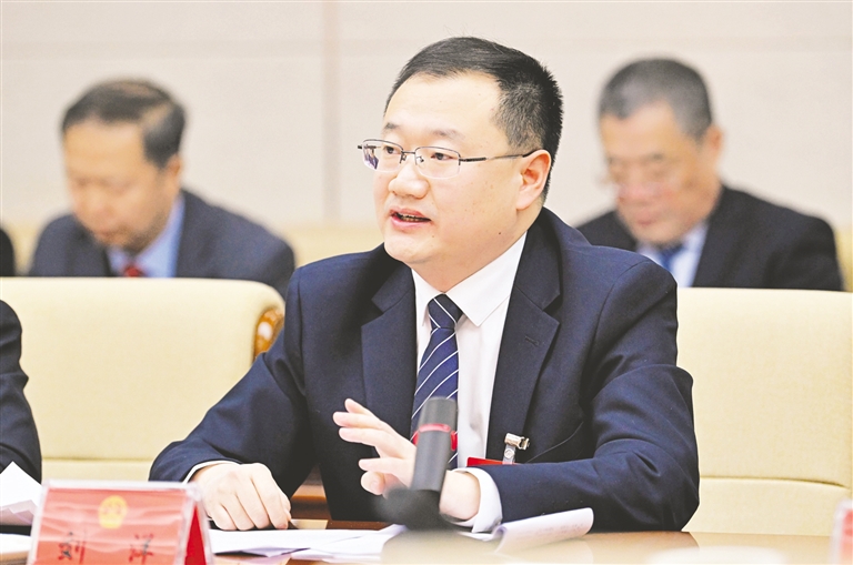 | 1月15日,通辽市代表团代表刘洋建议,出台支持能源重点领域大规模设备更新政策,鼓励运行时间长或单机容量小的风电光伏设备技术迭代、设备更新、以大代小,支持建设风电光伏退役装备资源化再利用示范区。本报记者 王磊 摄 |