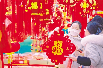 1月14日,顾客在昆明滇池国际会展中心挑选新春饰品。近日,第十七届中国昆明新春购物博览会暨云南省2025年彩云迎新消费季在昆明滇池国际会展中心开幕,展区内年货琳琅满目,前来购买年货的市民络绎不绝,整个会场洋溢着浓浓的节日氛围。 新华社发