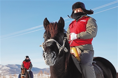 2024年12月15日,呼伦贝尔市扎兰屯市卧牛河镇气温随着纷飞的大雪降至-39℃,国家电网蒙东电力蒙古马(扎兰屯)共产党员服务队队员苗立仁等人骑着马在厚厚的积雪里对辖区线路进行巡视。“我们这里冬天常年被厚厚的积雪覆盖,有的地方车都开不进去,我们只能骑马巡视供电线路。我们要保证线路没有遗漏点,这个天气,如果线路出点故障,老百姓在家里就有可能挨冻。”苗立仁坐在马背上说。