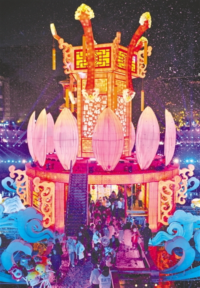 1月28日,人们在湖北省宣恩县城贡水河畔观灯游玩。新春佳节将至,神州大地处处洋溢着喜庆的节日氛围。 新华社发
