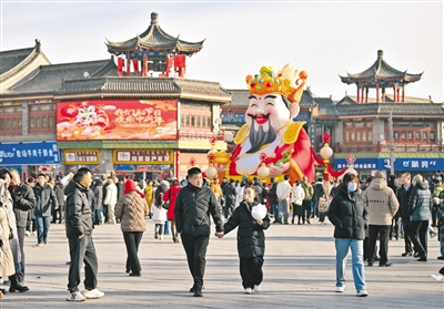 1月29日,呼和浩特市塞上老街旅游休闲街区游人如织。当天是大年初一,塞上老街旅游休闲街区、宽巷子等地迎来大量游客,人们游览观光、品尝美食,感受春节假期的惬意时光。本报记者 孟和朝鲁 摄