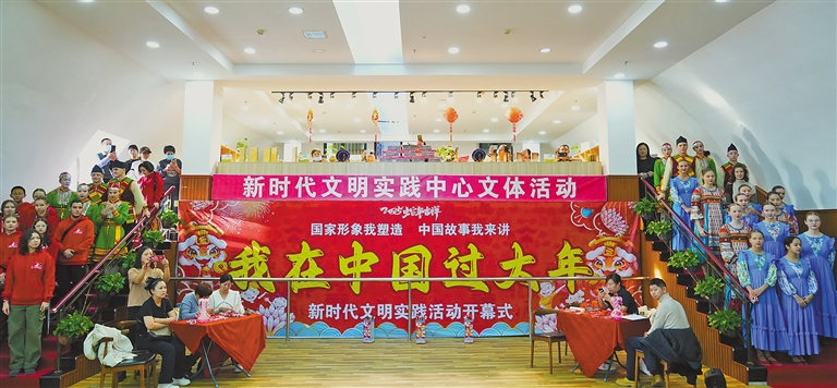 随后,“暖心中国 我在中国过大年”2025年新时代文明实践活动拉开序幕。古筝《万疆》、武术《中华武术》、合唱《半生雪》等节目展现中国传统文化的深厚底蕴和中国少年的蓬勃朝气。俄罗斯少年毫不逊色,他们的歌曲《哥萨克民谣—小天使》和舞蹈《马雷斯基民族舞蹈》充满异域风情,欢快的节奏、优美的舞姿赢得现场观众的阵阵掌声和欢呼声。