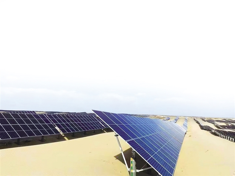 一排排风机连接在天地之间,随风起舞,威武的风车在阿拉善荒漠戈壁中蔚为壮观。这是由大唐集团建设的阿拉善盟乌力吉400兆瓦风电项目。建设银行内蒙古分行全力支持项目建设,为该项目提供信贷支持9亿元。