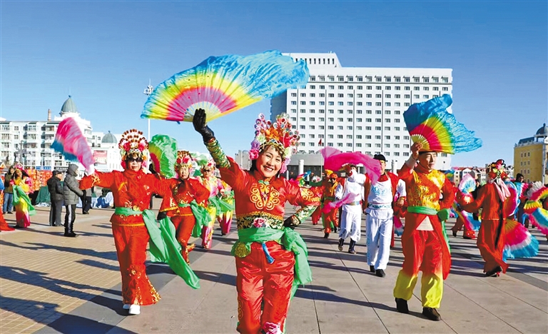 这个春节,最忙的是满洲里市街道秧歌队。伴随着喜庆的锣鼓声,秧歌队员们走上街头,他们舞艺娴熟,队形变换多样,舞龙、舞狮、舞金箍棒,舞出新春的喜悦,扭出新时代群众平安喜乐的生活景象和健康文明、积极向上的精神风貌。
