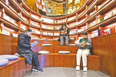 2月6日正月初九,市民在呼和浩特市新华书店腾飞路店阅读书籍。春节期间,新华书店设立春节主题图书专台,集中展示春节、民俗等方面的书籍,吸引了众多市民前来打卡阅读,书店成为了市民们乐享时光的好去处。本报记者 王磊 摄