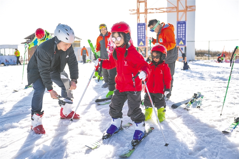 1月5日,小朋友在宜昌市夷陵区百里荒滑雪场滑雪。近年来,湖北挖掘特色冰雪资源,发挥“九省通衢”优势,推动“冷”资源焕发“热”活力,冰雪旅游快速发展。目前湖北已打造24个冰雪旅游主题景区、度假区和41家冰雪场地。武汉、宜昌、黄冈等多地成长为全国知名的冰雪旅游目的地。2024年至2025年冰雪季,湖北冰雪旅游目的地接待游客量预计超2000万人次。