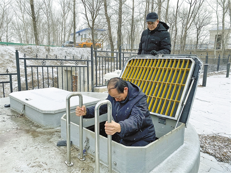 2月8日正月十一,天气依然寒冷,傍晚时分,在乌兰察布市凉城县弓坝河水库的调水工作室里,该县水利局工作人员依然在值守着,每隔一个小时,他们都要握着冰冷的扶手、踩着梯子,慢慢进入一体化泵站筒体中,认真察看筒体内的管道系统、控制系统等是否正常运行。掀井盖、看示数、记数字、管网巡护……这是水利局工作人员每天的工作日常。